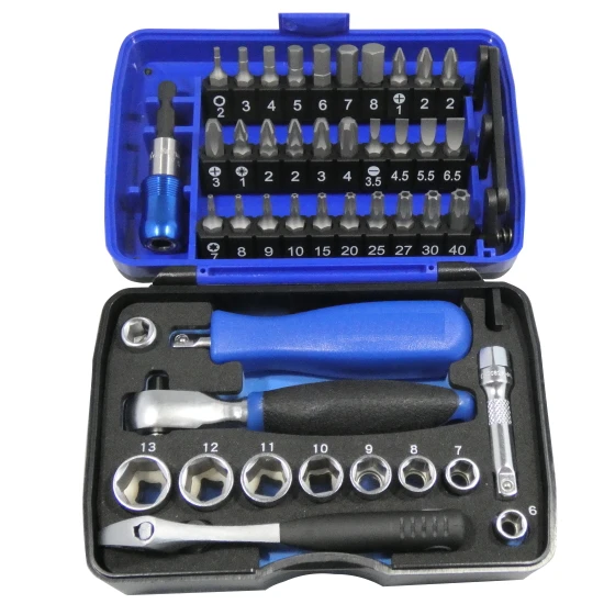 1/4″ Steckschlüsselgarnitur 44-teilig, kleines handliches Qualitätswerkzeug, mit Steckschlüsseleinsätze in der Größe 6 bis 13mm, einer arretierbaren Knarre, Steckgriff, Verlängerung 50mm, verstellbarer Maulschlüssel 4″, magnetischer Bithalter, Bitadapter und Bits in PH 1/2/2/3, PZ 1/2/2/3/4, Schlitz 3,5/4,5/5,5/6,5, TX 7/8/9/10/15/20/25/27/30/40, Sechskant 2/3/4/5/6/7/8.