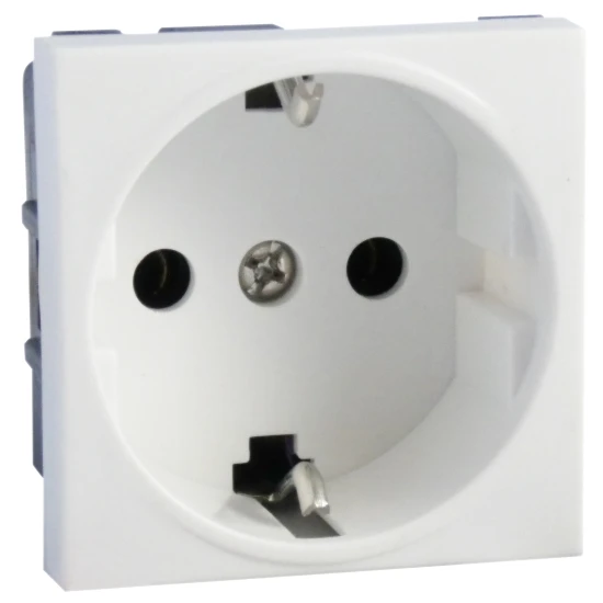 Schutzkontakt Steckdose in 45mm Norm, Schraubkontakte, zum Einsatz im 45mm System, die Steckdose wird durch Einrasten schnell und einfach montiert, Demontage durch Entriegelung der Rasthaken, Maße 45 x 45 x 40mm L x B x T, 16A, 250V, Farbe reinweiß (ähnl. RAL 9010).