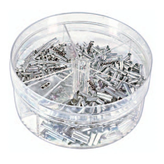 Aderendhülsenbox gefüllt mit Aderendhülsen ohne Isolierung (blank) nach DIN, gemäß DIN 46228 Teil 1, Material E-Cu gemäß EN 13600, galvanisch verzinnt, für fein- und feinstdrähtige Leiter der Klasse 5 und 6, 500 Stück von 0,5mm² und 0,75mm², 400 Stück von 1,0mm², 300 Stück von 1,5mm² und 200 Stück von 2,5mm².