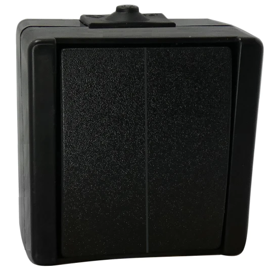 AP/FR Serienschalter schwarz, 10A, 250V~, mit Steckklemmen bis 2,5mm² Leitungsquerschnitt, Leitungseinführung von oben und unten, großer Verdrahtungsraum, IP44, hohe Materialqualität durch thermoplastischen Kunststoff, pflegeleichte Oberfläche, Farbe schwarz.