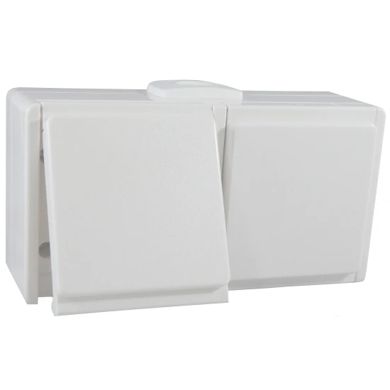 10A, 250V~, mit Steckklemmen bis 2,5mm² Leitungsquerschnitt, IP54, hochwertiges Material, UV-stabilisiert und schlagzäh (IK 07 geprüft – Festigkeit gegen Stöße mit einer Schlagenergie von bis zu 2,00 J), pflegeleichte Oberfläche, Farbe reinweiß, Klappdeckel der Steckdose drehbar, 2 Leitungseinführung von oben und unten, vorverdrahtet mit 2,5mm².