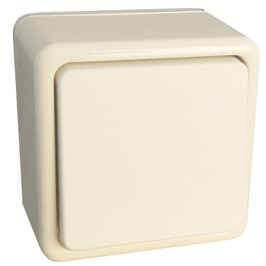 Taster (1 Schließer), Aufputz, stabile hochwertige Ausführung, seitliche Ausbrechöffnung, 250V, IP20 für den Innenbereich, Farbe cremeweiß.
