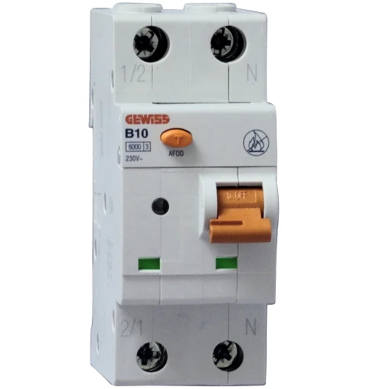 Brandschutzschalter B-Charakteristik der neusten Generation (AFDD), Fehlerlichtbogen-Schutzeinrichtung schützt vor Störlichtbogen, 10A, 2-polig (1P+N), 230V, Hersteller Schupa-Gewiss, schnelle und flexible Montage, Nennschaltvermögen 6kA, LED Anzeige über Fehlerlichtbogenauslösung oder Überspannung, Anschlußquerschnitt von 1 bis 25mm² bzw. über Stiftkammschiene, Berührungsschutz nach DIN VDE 0660 Teil 101, Leitungsschutz nach DIN VDE 0641 Teil 11, Breite 2 Teilungseinheit (35mm).