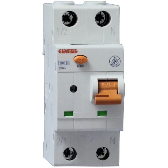 Brandschutzschalter C-Charakteristik der neusten Generation (AFDD), Fehlerlichtbogen-Schutzeinrichtung schützt vor Störlichtbogen, 16A, 2-polig (1P+N), 230V, Hersteller Schupa-Gewiss, schnelle und flexible Montage, Nennschaltvermögen 6kA, LED Anzeige über Fehlerlichtbogenauslösung oder Überspannung, Anschlußquerschnitt von 1 bis 25mm² bzw. über Stiftkammschiene, Berührungsschutz nach DIN VDE 0660 Teil 101, Leitungsschutz nach DIN VDE 0641 Teil 11, Breite 2 Teilungseinheit (35mm).