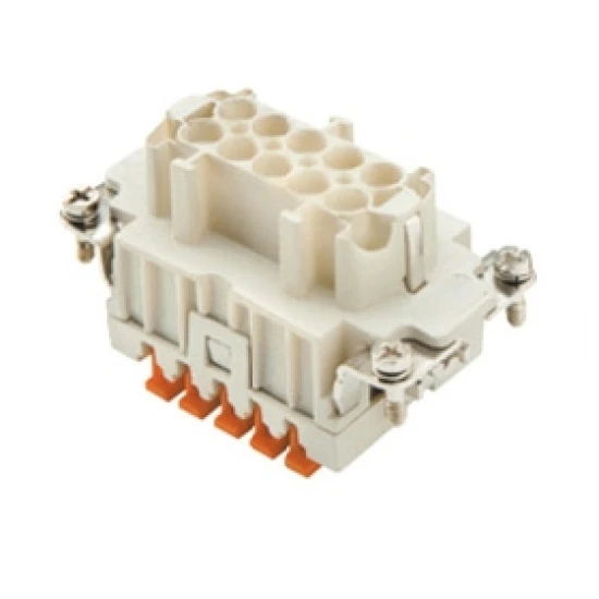 Buchseneinsatz für schweren Steckverbinder 10-polig plus Erde, versilberte Kontakte, 16A, 500V, schraubenlose Kontaktklemmen (patentiertes Käfigzugfederanschlusssystem) für starre und flexible Leiter bis 2,5mm².
