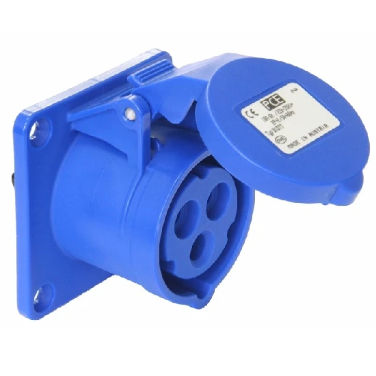 3-polig, 230V, 6h, nach IEC/EN 60309 und VDE0623, spritzwassergeschützt IP44, mit Flanschdichtung, Abstand der Befestigungslöcher: 60x 60mm. Flanschmaß: 75x75mm, Markenqualität, halogenfrei, beständig gegen eine Vielzahl von Chemikalien, hohe Temperaturbeständigkeit (-25°C bis +80°C), ausgezeichnete Schlagzähigkeit, Kontakte aus Kupfer-Zink-Legierung für eine hohe elektrische Leitfähigkeit, maximaler Leitungsquerschnitt 2,5mm².