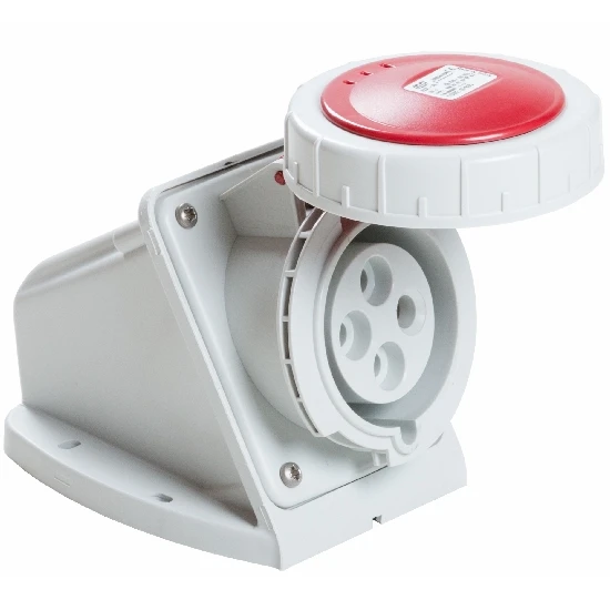 CEE Container Wandsteckdose wasserdicht, stabile, robuste Ausführung auch für extreme Einsatzbedingungen, ausgezeichnete Schlagzähigkeit IK 08, Kontakte aus Kupfer-Zink-Legierung für eine hohe elektrische Leitfähigkeit, 960°C Glühdrahtgeprüft, Selbstverlöschungsgrad VO (UL94), Schutzgrad IP67 (Schutz gegen zeitweiliges Eintauchen in Wasser, staubdicht), 32A, 4-polig, 3h, 440V.