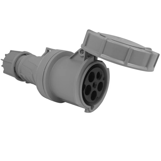 CEE Kupplung 63A 5-polig 1h für Notstromeinspeisung IP67 gemäß DIN VDE 0100-551, >50V, 1h, sichere und schnelle Montage durch schnelles Verschlußsystem, beständig gegen eine Vielzahl von Chemikalien, halogen- und silikonfrei, ergonomische griffige Bauform, ausgezeichnete Schlagzähigkeit IK 08, Kontakte aus Kupfer-Zink-Legierung für eine hohe elektrische Leitfähigkeit, mit Pilotkontakt, Kabelverschraubung mit integrierter Zugentlastung, 960°C Glühdrahtgeprüft, Selbstverlöschungsgrad VO (UL94), Schutzgrad IP67 (Schutz gegen zeitweiliges Eintauchen in Wasser, staubdicht).