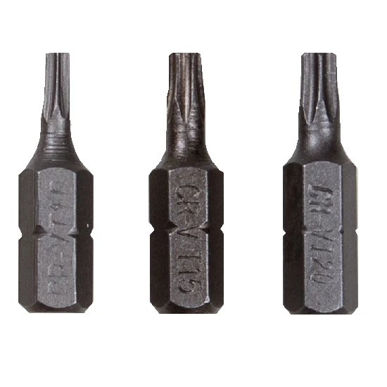Torx Bit Einsatz aus Chrom-Vanadium-Molybdän-Stahl für eine lange Standzeit, durchgehend gehärtet, 1/4 Zoll Sechskantschaft, zur Verwendung in Akku-Schraubern, Länge 25mm, verschiedene Größen (bitte wählen).