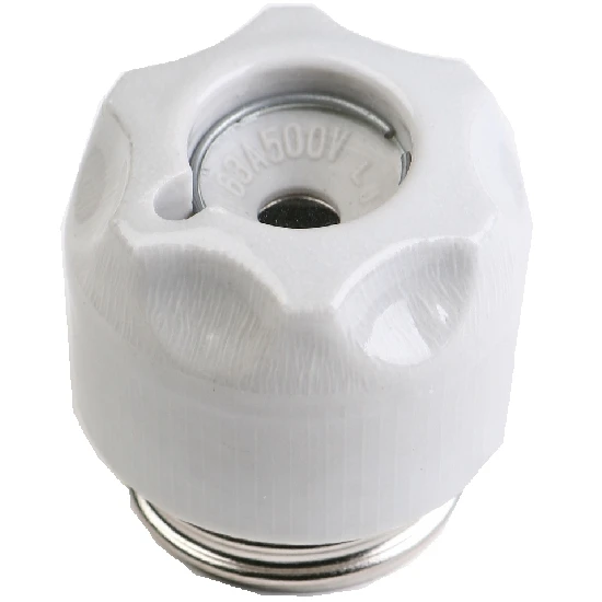 DII Schraubkappe aus Porzellan, E27, mit Prüfloch, bis 25A.