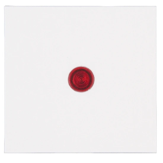 Flächenwippe mit Linse rot arktisweiß, für beleuchtete Schalter und Taster, inkl. Rahmenhalteplatte, mit roter Linse, Farbe arktisweiß, 55mm System (55×55 Format).