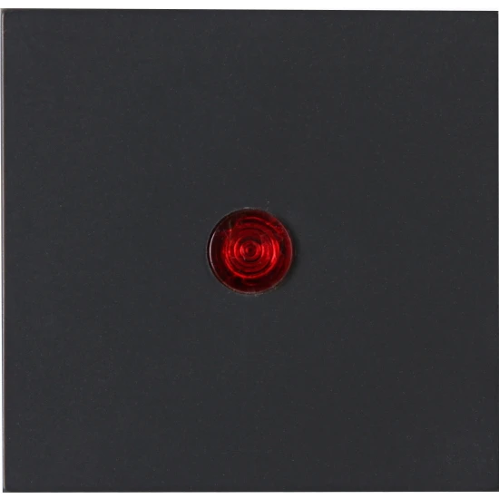 Flächenwippe mit roter Linse anthrazit, für Schalter und Taster, inkl. Rahmenhalteplatte, Farbe anthrazit, 55mm System (55×55 Format).