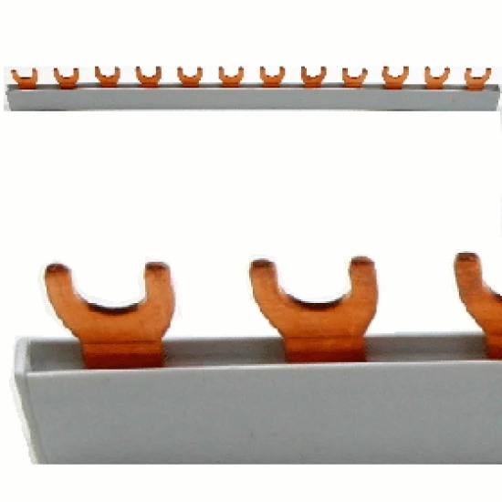 Gabelkammschiene 1-polig (1-Phasenschiene), isoliert, 12×1 Pol, 10mm², Nennstrom 63A, geschlossenes Verdrahtungssystem, für alle gängigen Leitungsschutzschalter mit Schraubanschluß und/oder Doppelfunktionsklemme geeignet, Schrittweite: 17,8mm.