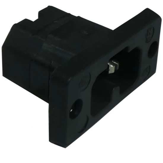 Geräteeinbaustecker Typ C16A, Lochabstand 40mm, nach IEC 60320-1, DIN 49458, 230V, 10A, Wärmebelastung bis 155°C.