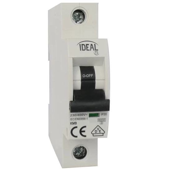 Leitungsschutzschalter B-Charakteristik, 6A, 1-polig, 230V, Fabrikat Ideal, Nennschaltvermögen 6kA, Anschlußquerschnitt von 1 bis 35mm² (25mm² bei Aderendhülsen) bzw. über Kammschiene, nach EN/IEC 60898-1, Breite 1 Teilungseinheit (17,5mm).