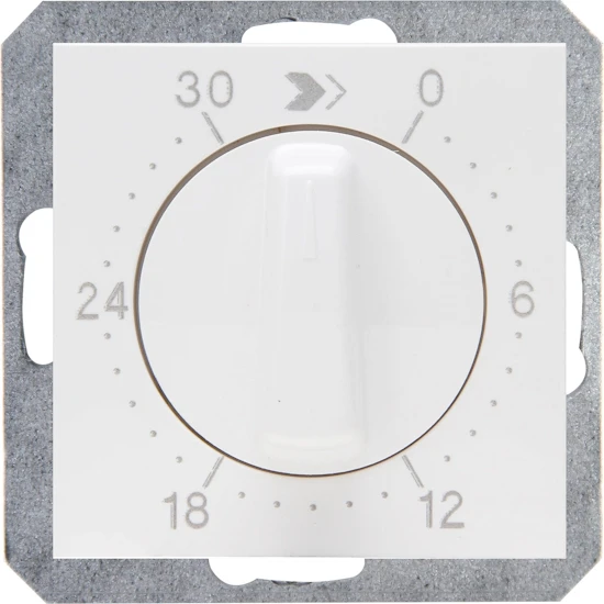 Mechanische Zeitschaltuhr – Laufzeit max. 30min – reinweiß, mit Abdeckung in der Farbe reinweiss, 55mm System (55×55 Format).