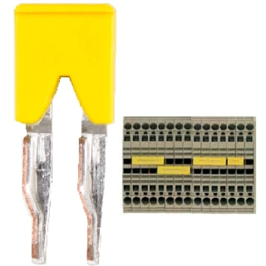Querbrücker 2-fach für Durchgangsklemme (565101), isoliert, max. 800V, max 24A, zum Querverbinden einzelner Durchgangsklemmen (jede Durchgangsklemme besitzt zwei Steckvorrichtungen für Querbrücker, so dass eine durchgängige Brückung möglich ist).