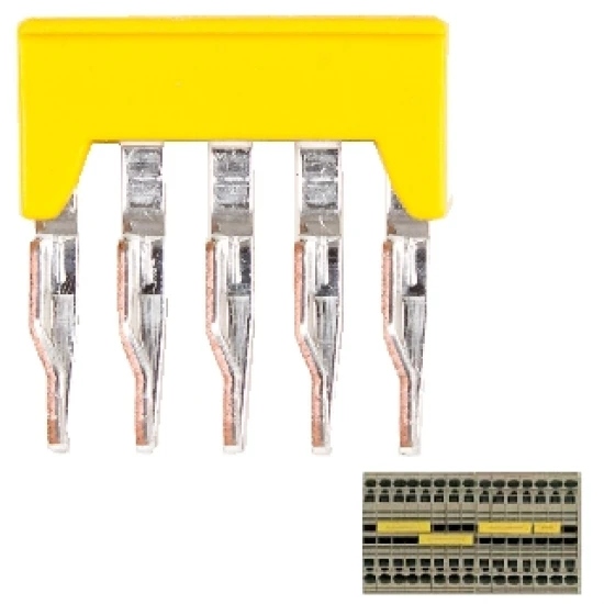 Querbrücker 5-fach für Durchgangsklemme (565101), isoliert, max. 800V, max 24A, zum Querverbinden einzelner Durchgangsklemmen (jede Durchgangsklemme besitzt zwei Steckvorrichtungen für Querbrücker, so dass eine durchgängige Brückung möglich ist).
