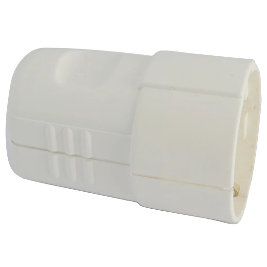 Schutzkontakt Kupplung weiß, Kunststoff-Ausführung mit Zugentlastung, 16A, 250V, nach DIN 49440/441, Farbe weiß.