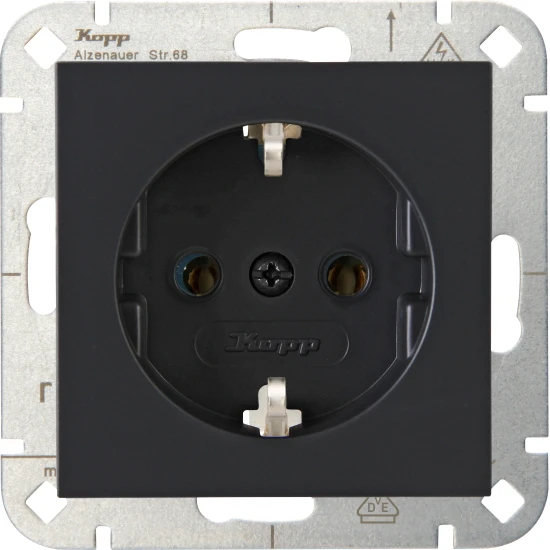 Schutzkontakt Steckdose anthrazit, 250 V AC, 10/16 A, mit Steckklemmen für Leitungsquerschnitte bis 2,5 mm², Farbe anthrazit.