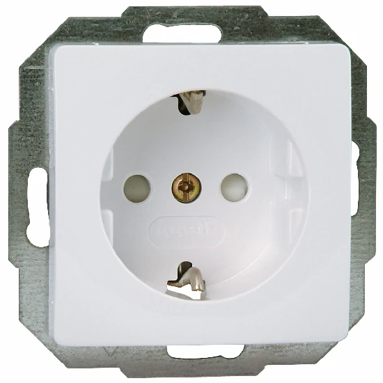 Schutzkontakt Steckdose mit Kinderschutz (erhöhtem Berührungsschutz), 250 V AC, 10/16 A, mit Steckklemmen für Leitungsquerschnitte bis 2,5 mm², Farbe arktisweiss.