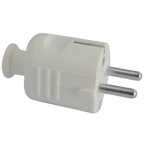 Schutzkontakt Stecker weiß, Kunststoff-Ausführung mit Zugentlastung, 16A, 250V, nach DIN 49440/441, Farbe weiß.