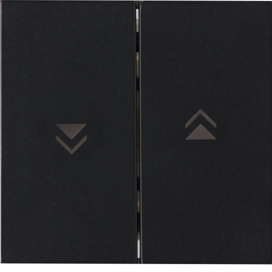 Serien Flächenwippe Auf/Ab schwarz matt, für mechanische Wippen-Jalousieschalter und -Taster, mit gedruckten Pfeilen, inkl. Rahmenhalteplatte, Farbe schwarz matt, 55mm System (55×55 Format).