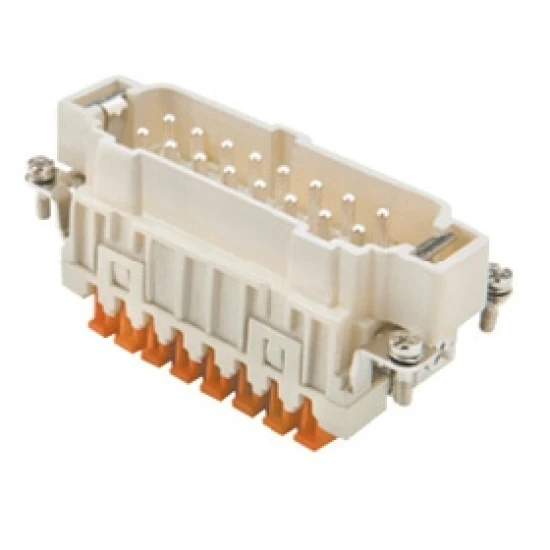 Stifteinsatz für schweren Steckverbinder 16-polig plus Erde, versilberte Kontakte, 16A, 500V, schraubenlose Kontaktklemmen (patentiertes Käfigzugfederanschlusssystem) für starre und flexible Leiter bis 2,5mm².