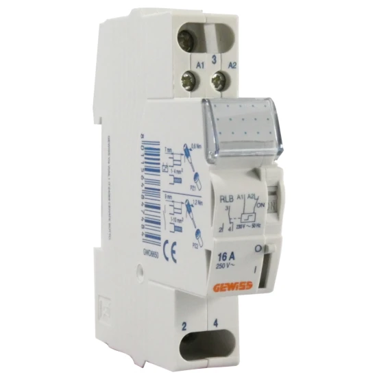 Stromstoßschalter 16A zum Schalten von Leuchten, Jalousien, usw. über Taster, auch zur Handbetätigung, Prüftaste und optische Schaltstellungsanzeige, 1 Wechsler, 16A, max. Schaltleistung: 2.000 Watt (Leuchtstofflampen bis 1.000W), Markenqualität.