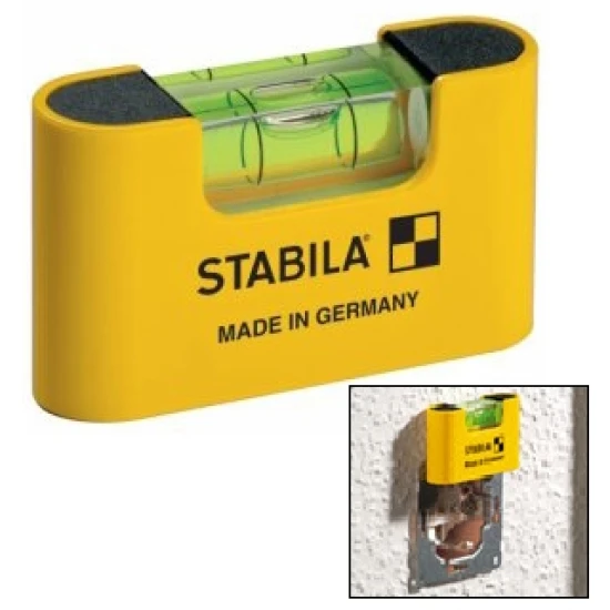 Taschen Wasserwaage für den Elektriker, zum schnellen justieren von Schaltern, Steckdosen uvm., extra starker Seltenerd-Magnet, fest vergossene Qualitätslibelle, abgesetzte Messfläche, Messgenauigkeit in Normallage 1mm/m, Farbe gelb, deutsches Qualitätsprodukt.