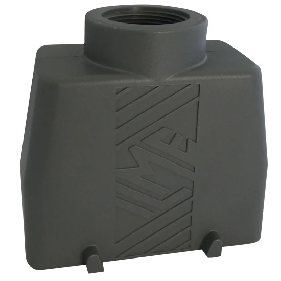 Tüllengehäuse für schweren Steckverbinder 16-polig, Kabelausgang gerade für M32 Kabelverschraubung, zur Aufnahme eines 16-poligen Buchsen- oder Stifteinsatz, robuste Ausführung für Industrie, Schifffahrt, Chemische Werke etc., hohe Resistenz gegen chemische Umwelteinflüsse, selbstverlöschender Kunststoff, antistatisch, IP65 im verriegelten Zustand, vollisoliert, für Umgebungstemperaturen von -40°C bis +90°C.