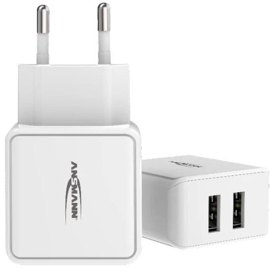 USB Adapter – 2-fach Ladestecker (HomeCharger), zum Laden von 2 USB Geräten in der Schuko Steckdose, kompakt und leicht, ideal für Unterwegs, Daheim und im Büro, mit Kurzschluß-, Überspannungs- und Überstromschutz.